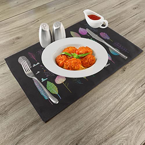 ABAKUHAUS Natura Tovaglietta Americana Set di 4, Autumn Forest Ecosystem, Tovagliette in Tessuto Lavabile per Tavolo da Pranzo Cena, Multicolore Nero Viola