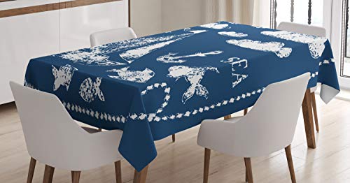 ABAKUHAUS Blu Navy Tovaglia, Barca Nubi Anchor, Rettangolare per Sala da Pranzo e Cucina, 140 cm x 170 cm, Navy White