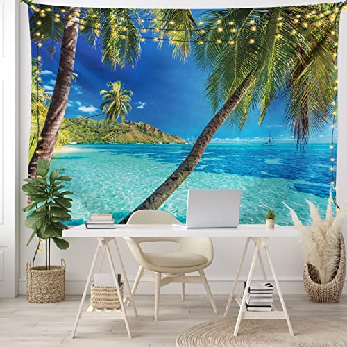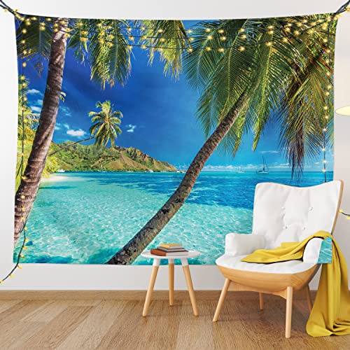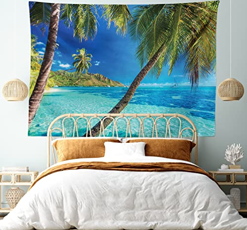 ABAKUHAUS Oceano Tappeto da Parete e Copriletto, Palme Spiaggia Mare, Colori Che Non sbiadisce, 150 x 110 cm, Blu Turchese