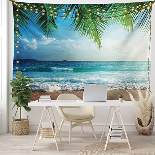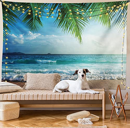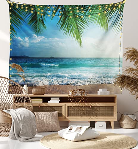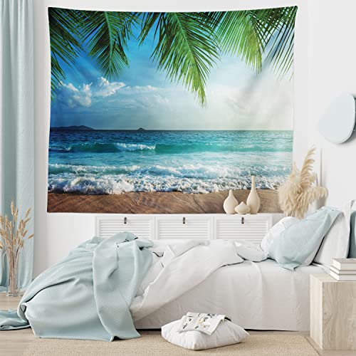ABAKUHAUS Oceano Tappeto da Parete e Copriletto, Palms Tropical Island, Lavabile e Senza Colori sbiaditi, 150 x 110 cm, Blu e Verde