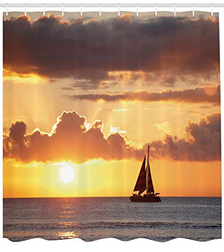 ABAKUHAUS Oceano Tenda da Doccia, Barca in Sewith Sunset, Tessuto Set di Decorazioni per il Bagno con Ganci, per la vasca da bagno, 175 cm x 200 cm, Grigio e Calendula
