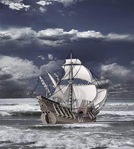 ABAKUHAUS Paesaggio Set Copripiumino, Pirati dei Caraibi Nave, 2 Pezzi con 1 Fodera Cuscino, 130 x 200 cm - 70 x 50 cm, Blu grigio pallido grigio