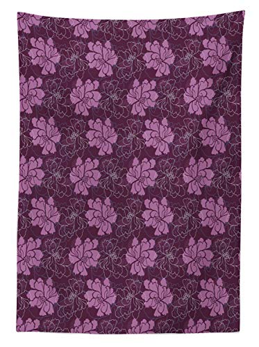 ABAKUHAUS Primavera Tovaglia, Modello botanico Petalo, Rettangolare per Sala da Pranzo e Cucina, 140 cm x 200 cm, Secco Rose e prugna