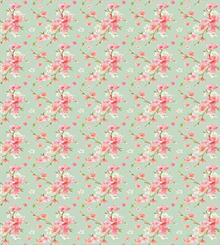 ABAKUHAUS Shabby Flora Set Copripiumino, Retro Spring Blossoms, 3 Pezzi con 2 Fodere Cuscini, 230 x 220 cm - 70 x 50 cm, Mint Rosa