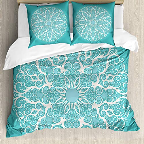 ABAKUHAUS Turchese Set Copripiumino, Curve simmetriche Floreali, Arredamento del Letto, 3 Pezzi con 2 Federe Cuscini, 155 x 200 cm - 80 x 80 cm, Bianca