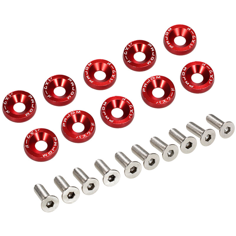 Caratteristiche: Il kit include 10 rondelle e 10 viti, si adatta a quasi tutti i bulloni da 10 mm sul veicolo inclusi parafanghi, paraurti, cofani, vano motore, fari e targa. Alluminio billet di alta qualità, resistente per un uso prolungato. La combinazione di rondelle e viti si fissa saldamente, difficile da spostare, installazione semplice e conveniente. Migliora l'aspetto del vano motore e dell'esterno del tuo veicolo, distinguiti dalla massa con l'aspetto che desideri e mostra la tua caratteristica. Colori audaci e vivaci, molti colori vivaci tra cui scegliere e coordinare con la combinazione di colori del tuo veicolo, disponibile in blu, nero, rosso, oro, viola, argento, verde e titanio. Specifica: Materiale: alluminio billet Colore: blu, nero, rosso, oro, viola, argento, verde, titanio (opzionale) Dimensioni rondella: ca. 1,8 * 1,8 * 0,4 cm / 0,71 * 0,71 * 0,16 pollici Dimensione della vite: ca. 1,1 * 1,1 * 1,9 cm / 0,43 * 0,43 * 0,75 pollici Peso della rondella: ca. 1,9 g/0,06