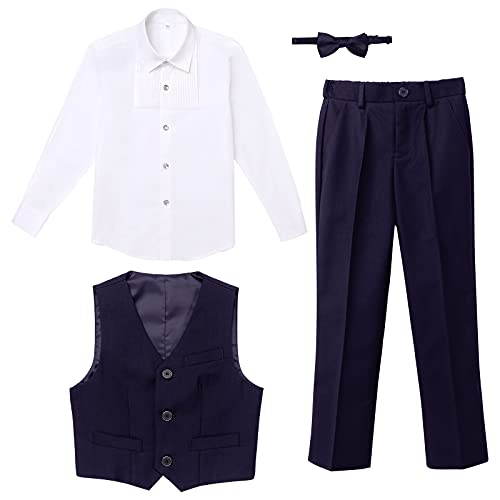 ♔ Il Pacchetto Include: Set formale da uomo per ragazzi include gilet completamente foderato, pantaloni anteriori piatti, camicia a maniche lunghe e papillon Set da 4 pezzi, in particolare per feste di matrimonio, cerimonie, host, attività commerciali, oggetti di scena per foto