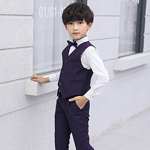 Set di Abbigliamento per Bambino Ragazzi Completi e Coordinati Camicia a Maniche Lunghe Pantaloni Cravatta a Farfalla Gilet 4pz Abiti da Cerimonia Smoking Completi da Sposa da Uomo Viola 5-6 Anni