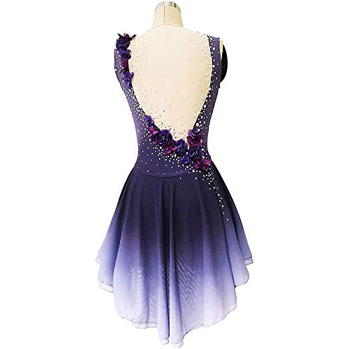 Abbigliamento Pattinaggio Fatto a Mano Vestito Pattinaggio Figura Vestito Pattinaggio Su Ghiaccio Per Bambini Ragazza Donna Vestito Senza Maniche Professionale Elastico Traspirante,Purple-Child10