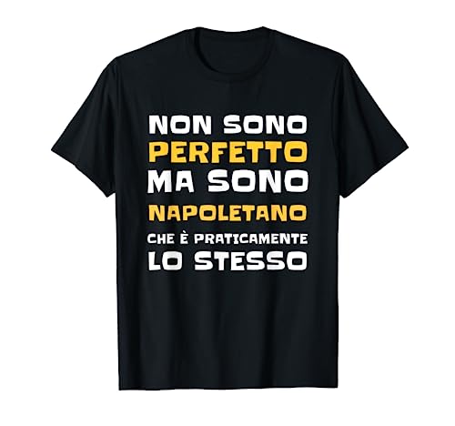 Testo sarcastico: Non sono perfetto ma sono napoletano che è praticamente lo stesso. Stampe con scritte divertenti e frasi simpatiche ed ironiche per uomo o ragazzo napoletano. Sei nato a Napoli? Questo disegno è perfetto per te.
