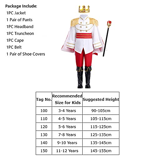 ✤✤Materiale: Il costume da principe cavaliere è realizzato in tessuto di poliestere, che è delicato sulla pelle e traspirante, non irrita la pelle delicata del tuo bambino, fornendo al tuo bambino un comfort per tutto il giorno. Costume da principe azzurro da bambino per bambini, giacca a maniche lunghe, pantaloni rossi e cintura.