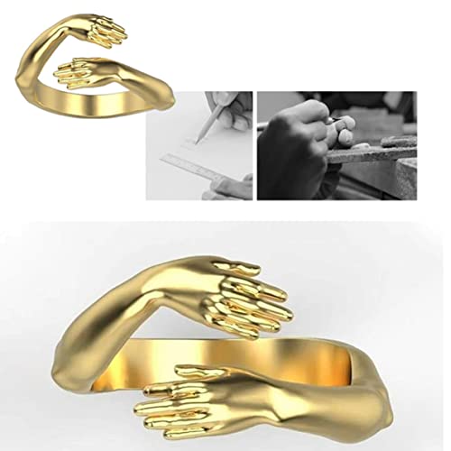 Abbraccio anello, unisex Respirante argento Romantico abbraccio anello dito della mano per gli uomini ragazze signore dorate