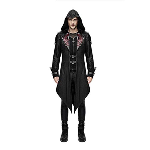 ABCDE Devil Fashion Giacca con Cappuccio Gotica da Uomo Giacca Aderente Cappotto Nero Assassin's Creed, Trench Unisex, Costume retrò Medievale di Halloween, L'outfit Perfetto for Goth e Steampunk