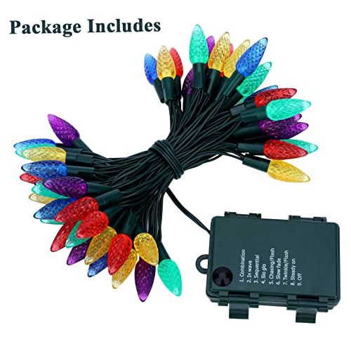 8 Lighting Modes: Christmas bulb fairy lights feature 8 lighting effects, including combination, in wave, sequential, slo glo, chasing/flash, slow fade, twinkle/flash, and steady on, and you can control it through the button on battery box.