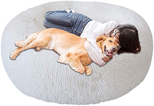 Abcoll Fluffy Plush Calming Cotone Cucce per Cani da Interno, Rotonda Ciambella Lavabile Cuccia Cane, Ultra Morbido Divanetto per Cani (Colore: White, Taglia: 80CM/31.4inch)