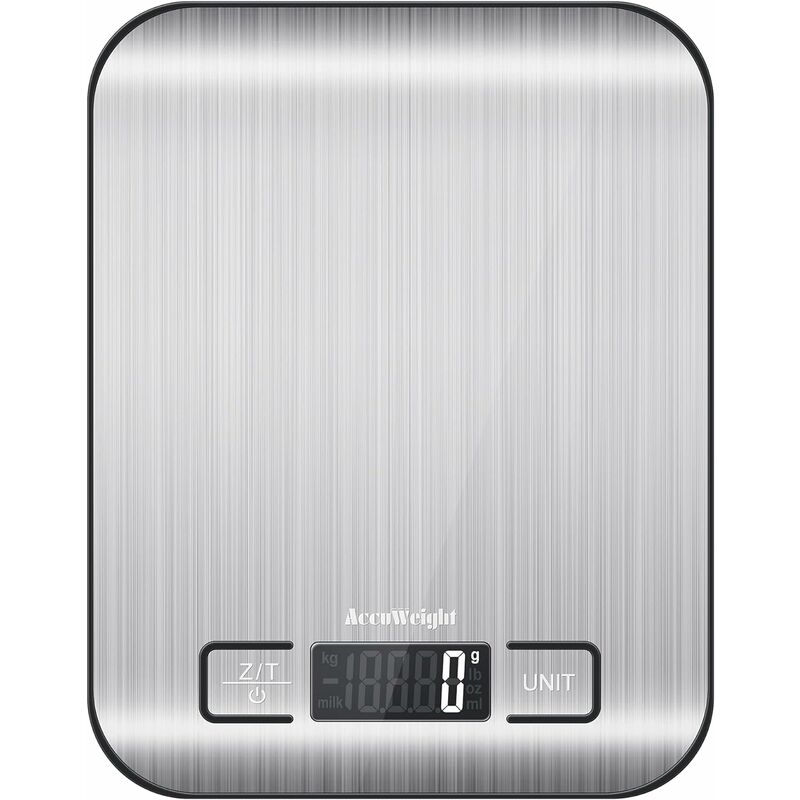 Descrizione del prodotto Precisione 1 g 1 g 0,01 g 0,1 g 1 g Unità multiple lb,oz/g/fl,oz/ml lb,oz/g /fl,oz/ml g/ct/gn/ozt/dwt/oz g/ct/gn/ozt/dwt/oz lb,oz/g/fl,oz/ml Funzione D Spegnimento automatico 180 secondi 120 secondi 90 secondi 90 secondi 180 secondi Indicatore di bassa potenza ✓ ✓ ✓ ✓ ✓ Pesata massima gamma 5 kg 5 kg 300 g 1000 g 5 kg Caratteristiche: Capacità peso: 5 kg / 11 lb Unità: g, kg, lb, oz, ml, latte Incrementi di misurazione: 1 g Spento da solo: 180 secondi Retroilluminazione spenta da stesso: 60 secondi Alimentato di: 2 batterie AAA 3V Dimensioni: 18 cm x 14 cm x 1,7 cm (7,1 x 5,5 x 0,7 pollici) Bilancia da cucina digitale multifunzione Your Kitchen Assistant Cucina affidabile La bilancia da cucina digitale si legge rapidamente con incrementi di 1 g, ha una capacità di salendo a 5 kg e rimarrà acceso per circa 180 s prima di spegnersi automaticamente. L'interfaccia è estremamente semplice con solo due pulsanti: uno per cambiare unità di misura, uno per tarare e