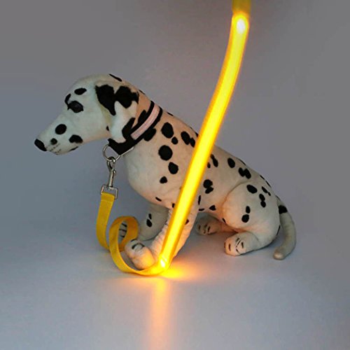 Abcsea Corda di Glow per Animali Domestici, guinzaglio per Cani, Corda di Cinghia, La Cintura Dell'animale Domestico Si Illuminano al Buio - Giallo, 1PCS