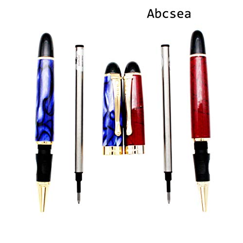 Abcsea Jinhao 450 penne a sfera a punta fine, penne fineliner nere (erba rossa e fiore blu), con 5 pezzi di ricambio per penna a sfera standard nera da 0,5 mm