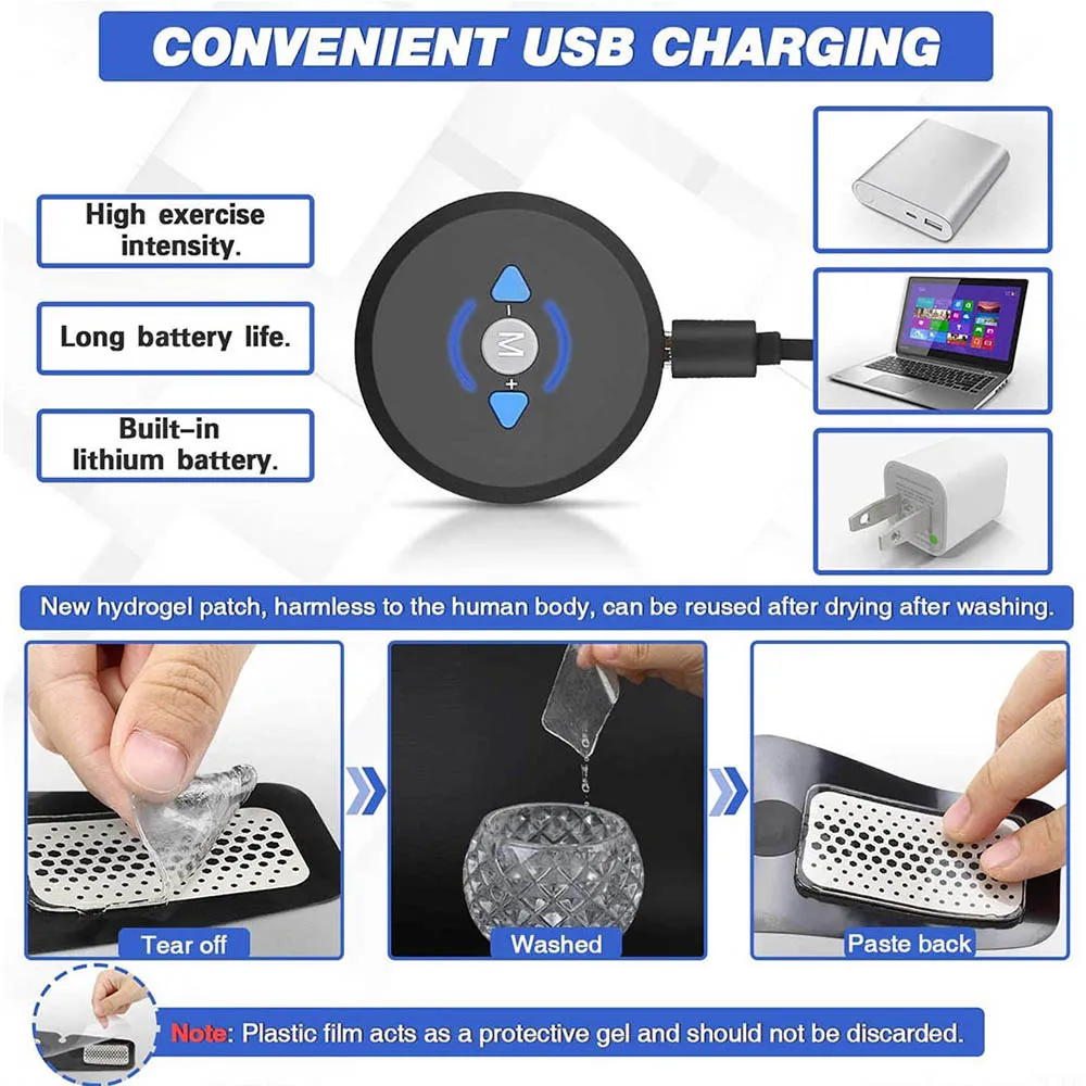 Abdominal Muscle Stimulator EMS ABS Trainer USB Rechargeable Electrostimulator for Home Gym Workout Hip Training Toner Massager