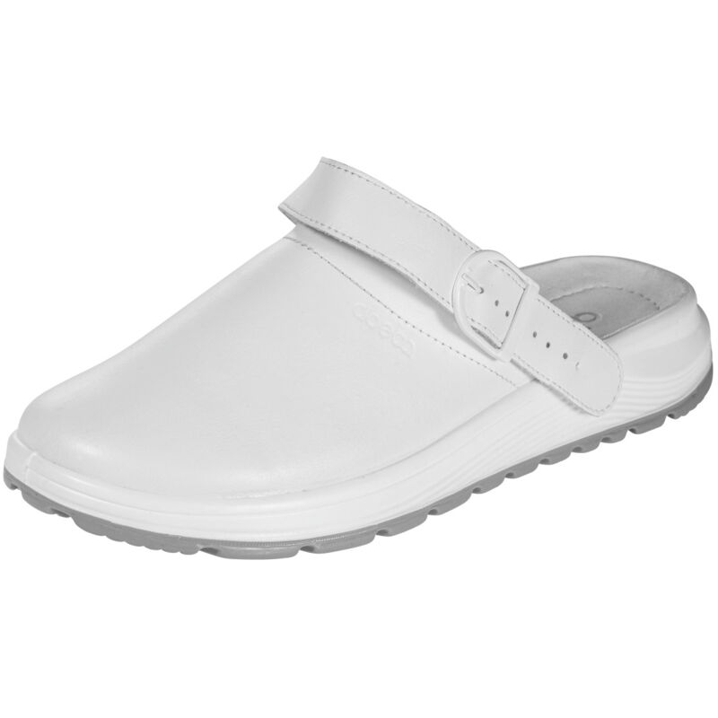 Calzatura professionale della serie ACTIVE. * Tomaia in pelle fiore. * Cinturino per il tallone regolabile, fisso. * Suola esterna in PU con tecnologia SELF CLEAN. * Maggiore resistenza agli acidi, alle basi e al contatto di breve durata con sostanze calde fino a 180 °C. Norma: EN ISO 20347:2012 OB A E FO SRC Grado di protezione: OB