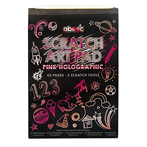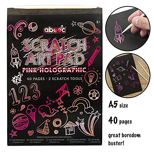 Scratch Art Pad - Tappetino olografico rosa - 40 pagine con 2 strumenti di graffio inclusi.