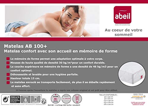 Abeil AB100 Materasso di durezza Media, sfoderabile, Colore Bianco, Poliestere, Bianco, 90 x 200 cm