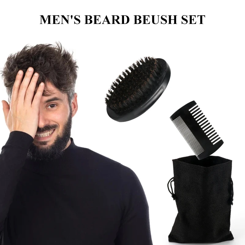Abeis Beard Brush and Comb Grooming Set Oil Head Shape Beard Comb Brush Kit Wave Brush Men's Beard Care Tool Professional