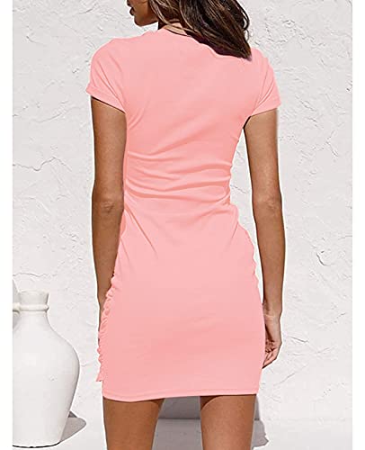 ABINGOO Donna Vestito Casuale Abito da Sera Partito Festa Manica Corta Tunica Bodycon Mini Vestiti Banchetto Elastico (Z-Rosa, s)