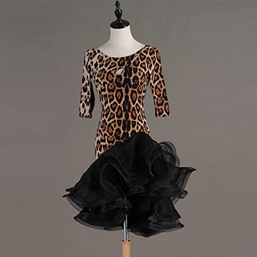 Abiti da Ballo Latino Leopardato da Donna con Scollo Tondo Abito da Concorso Latino Abito da Ballo Salsa Samba Cha Cha Gonna Flamenco Dress Vestito di Performance (XXL,Leopard)