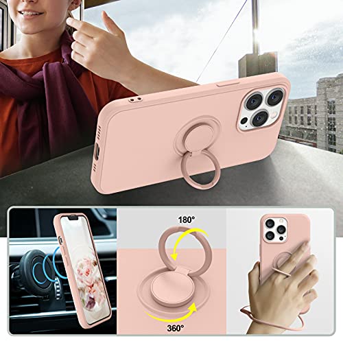 Abitku Cover per iPhone 13 PRO, Silicone Cover con Anello Rotante Magnetico a 360 Gradi, AntiGraffio Custodia per iPhone 13 PRO 6.1 Pollic, Rosa