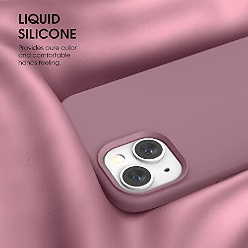 Abitku Cover in Silicone Liquido Compatibile con iPhone 13 Custodia 6,1”, Custodia per iPhone 13 Cover Antiurto con Protezione Fodera in Microfibra Case (Viola Rosa)