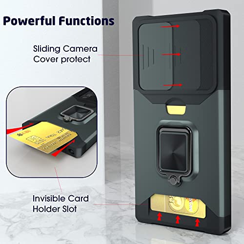 Abitku Galaxy S22 Ultra Cover, Custodia Galaxy S22 Ultra 5G [ Cavalletto in Metallo Rotante][Protezione Fotocamera] [portacarte] per Galaxy S22 Ultra 6.8'', Verde scuro