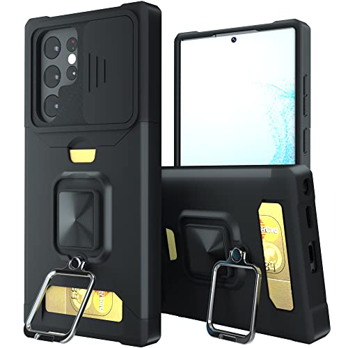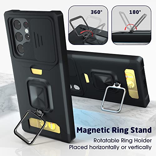 Abitku Galaxy S22 Ultra Cover, Custodia Galaxy S22 Ultra 5G [ Cavalletto in Metallo Rotante][Protezione Fotocamera] [portacarte] per Galaxy S22 Ultra 6.8'', Nero