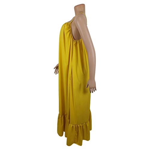 Abito da ballo lungo da donna con scollo a V senza maniche Boho con spalline sottili Esecuzione Allenamento Ufficio Primavera Abiti Corti Spalle Scoperte Maxi Spiaggia Notte Vacanze, Giallo, L
