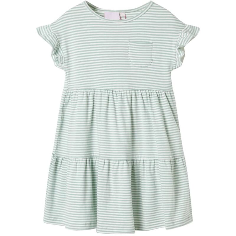 La nostra linea di abbigliamento per bambini caratterizzata da capi accessibili che sono di alta qualit e resistenti, adatti per tutti i giorni, per bambini da 1,5 a 10 anni. Il nostro assortimento comprende giacche, maglioni, camicie, e molto altro, con una variet di stili, taglie, e colori. Seguendo gli standard di alta qualit del mercato, utilizziamo materiali pregiati e tecniche di produzione avanzate. Questo abito da bambina ha girocollo, maniche a volant, e una tasca sul petto. Questo abito da bambina color menta presenta delle strisce ripetute. L'abito corto da bambina realizzato in un materiale morbido composto da cotone ed elastan per offrire comfort e traspirabilit. Buono a sapersi: Questa tabella delle taglie nell'immagine fornisce le misure per i bambini di et compresa tra 1,5 e 10 anni, che indicano l'altezza, il petto, la vita, e i fianchi. Potete trovare facilmente la taglia corretta per la vostra bambina. Materiale: 95% cotone, 5% elastan Colore: Menta Design: A righe