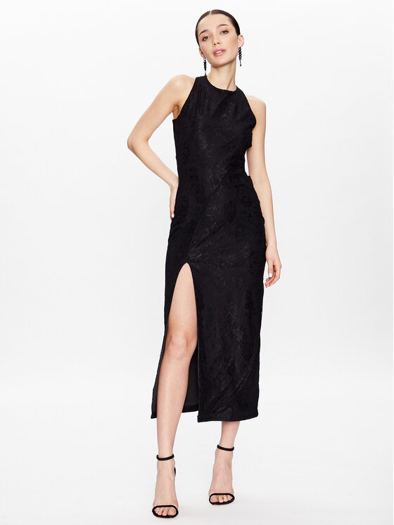 ROTATE Abito da cocktail Mesh Lace Slit RT2496 Nero Slim Fit