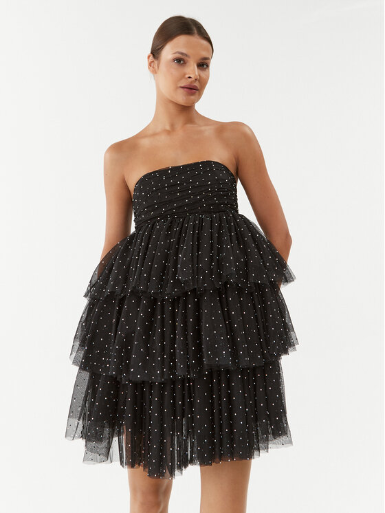ROTATE Abito da cocktail Mesh Mini Ruffle 111032100 Nero Regular Fit