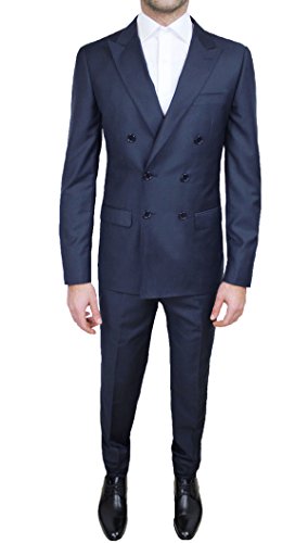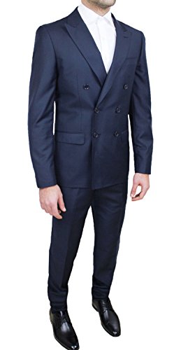 Abito Completo Alta Sartoria Uomo Doppiopetto Blu Scuro Navy Marine Elegante Cerimonia (48)