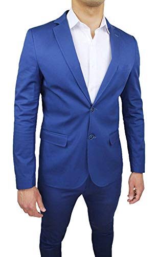 Abito Completo Uomo Blu Chiaro Collezione Sartoriale Slim Fit Elegante Vestito Cerimonia Made in Italy (54)