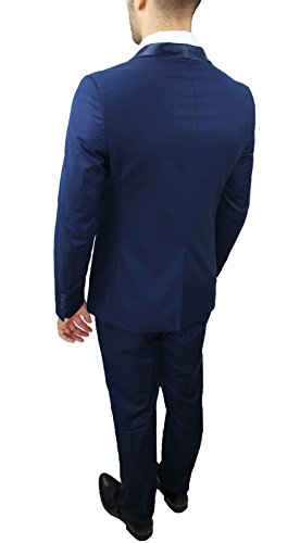 Abito Completo Uomo Sartoriale Blu Raso Slim Nuovo Elegante Cerimonia (50, Blu)