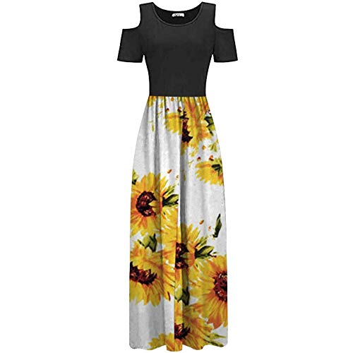 Abito da donna, casual, da donna, abito estivo, boho, maxi abito da donna, mini abito casual con fiori, abito lungo da donna a maniche corte con stampa floreale, Donna, verde, S