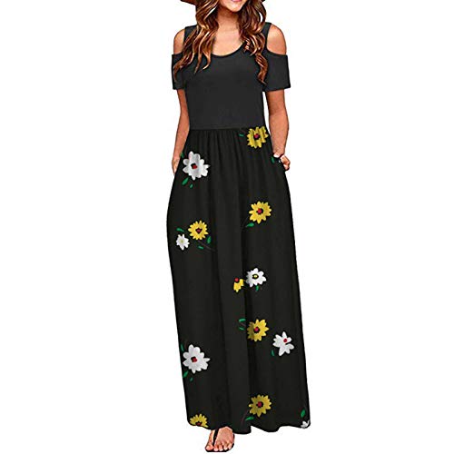 Abito da donna, elegante, lungo fino al ginocchio, estivo, con paillettes, per feste e serate, casual, a maniche corte, abito da sera da donna, abito da donna, abito lungo al ginocchio, abito estivo, abito da sera, abito da sera casual, abito da sera, abito da sera, abito da sera senza maniche, con fiori ricamati, lunghezza al ginocchio, abito da cocktail, abito da sera, abito da sera senza spalline
