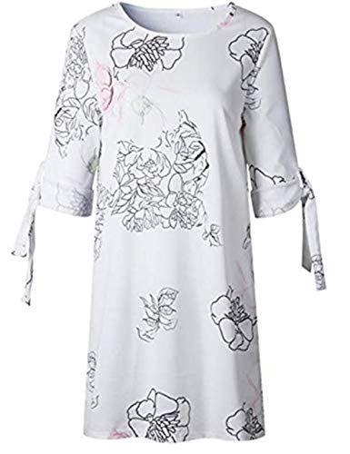 Abito Donna Estivo - Chemisier - Vestito Lungo - Casual - Rose - Fiori - Fantasia fiorita - Bohemian - Fiore - Spiaggia - Mare - Colore Bianco - Taglia L - Abbigliamento Ragazza