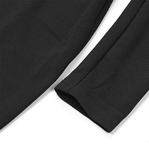 Abito Donna da Sera Chiffon Maxi Abito Lungo Aderente Scollo a V Profondo Vestito Maniche Lunghe Costume da Ufficio Cocktail Tinta Unita (Nero, L)