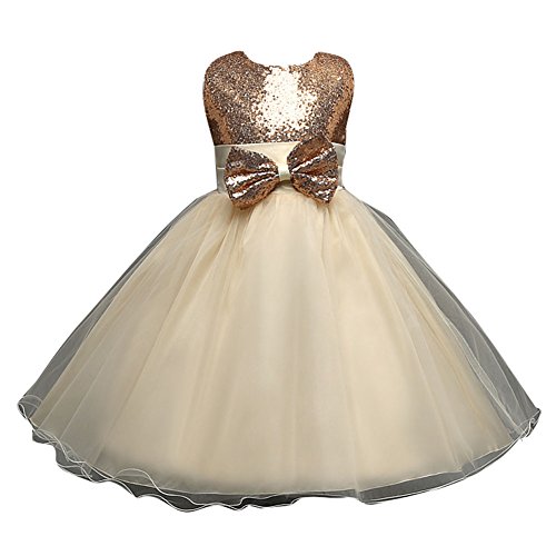 Abito Estivo Bambina - Pizzo Abiti da Cerimonia - Ragazza Estate Vestito di Paillette Beige/4-5anni /120cm
