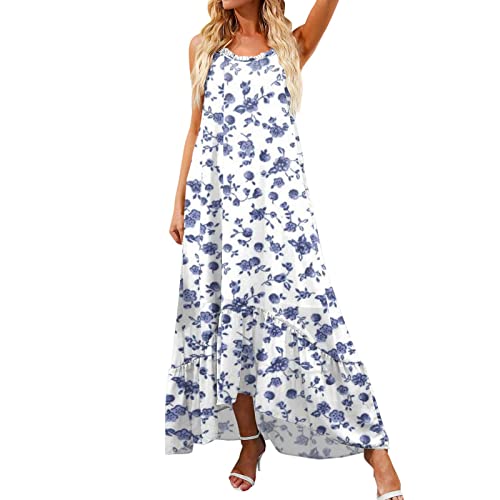 Vestito estivo da donna - Vestito casual senza maniche maxi lungo abito floreale da spiaggia per feste, abito estivo boho, abito estivo da donna con scollo a O, senza maniche, stampa gradient plus taglia maxi abito estivo da spiaggia estivo da donna estivo a righe, maxi abito casual con scollo a V, volant, abito da donna senza maniche, scollo rotondo, vita elasticizzata, abito estivo con tasche, senza spalline, maxi abito con volant con spacco laterale