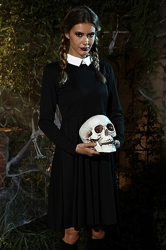For G and PL Abito per Halloween da donna nero con colletto alla Peter Pan manica lunga svasata abito da pattinaggio nero XS