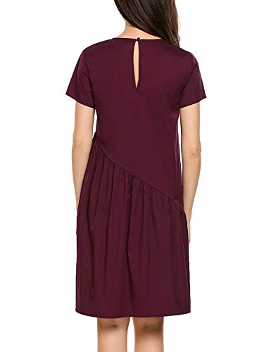 Abito Manica Corta con Semplice Donna Stile Scollo Abito Pieghe A V Scollo Abito Lungo Allentato con Scollo all'Americana Casual Lunghezza Ginocchio Oversize Casual (Color: Winered, Size: L)