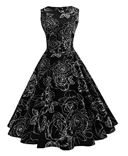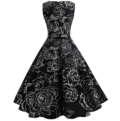 Abito Da Sera Donna Estivi Eleganti Abiti Da Cerimonia Stampato Floreale Senza Maniche Grazioso Moda Vestiti Anni 50 Swing Hepburn Style Cocktail Vestiti Sezione Medio Lunga