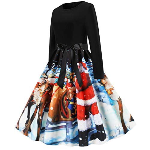 Abito Vintage Anni 50 60 Festa VJGOAL Vestito di Natale delle Donna Eleganti A-Line con Cintura Abito da Cocktail Natale Principessa Eleganti Abiti da Santa Natale Party Festa Regalo di Natale